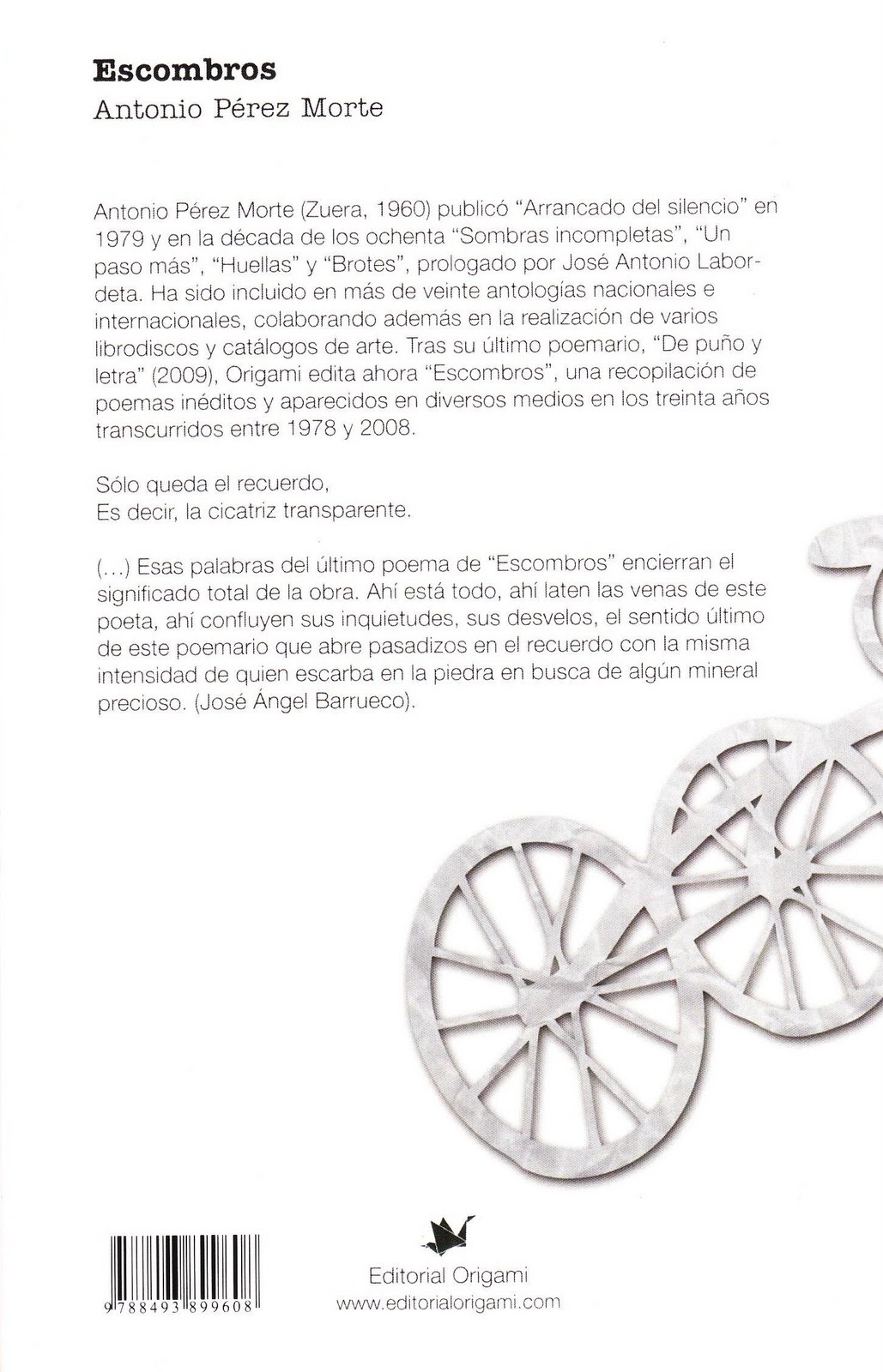 Este poemario, Escombros, tiene para mí varios motivos de satisfacción.